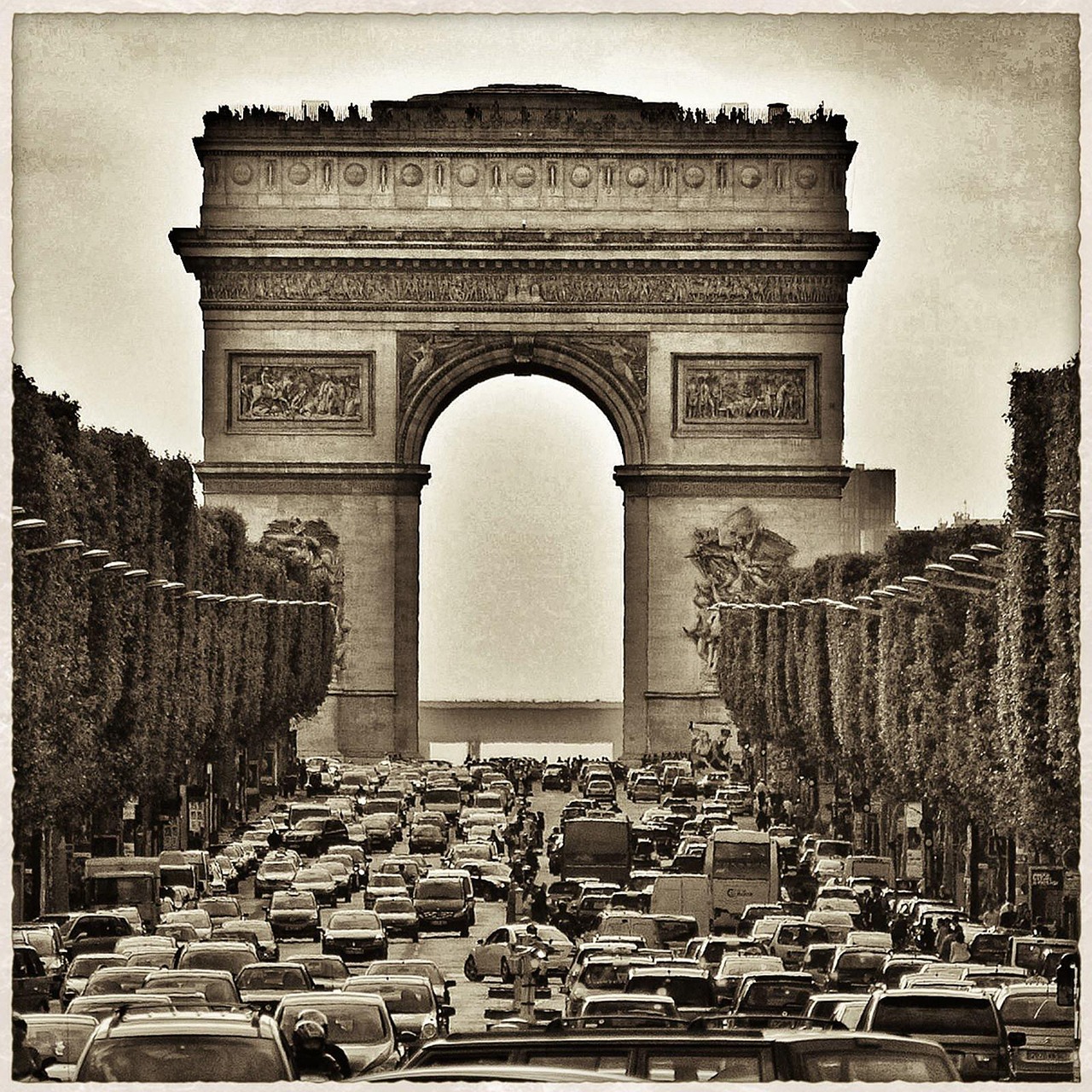 - 샹젤리제 거리 방향에서 개선문을 정면으로 촬영.